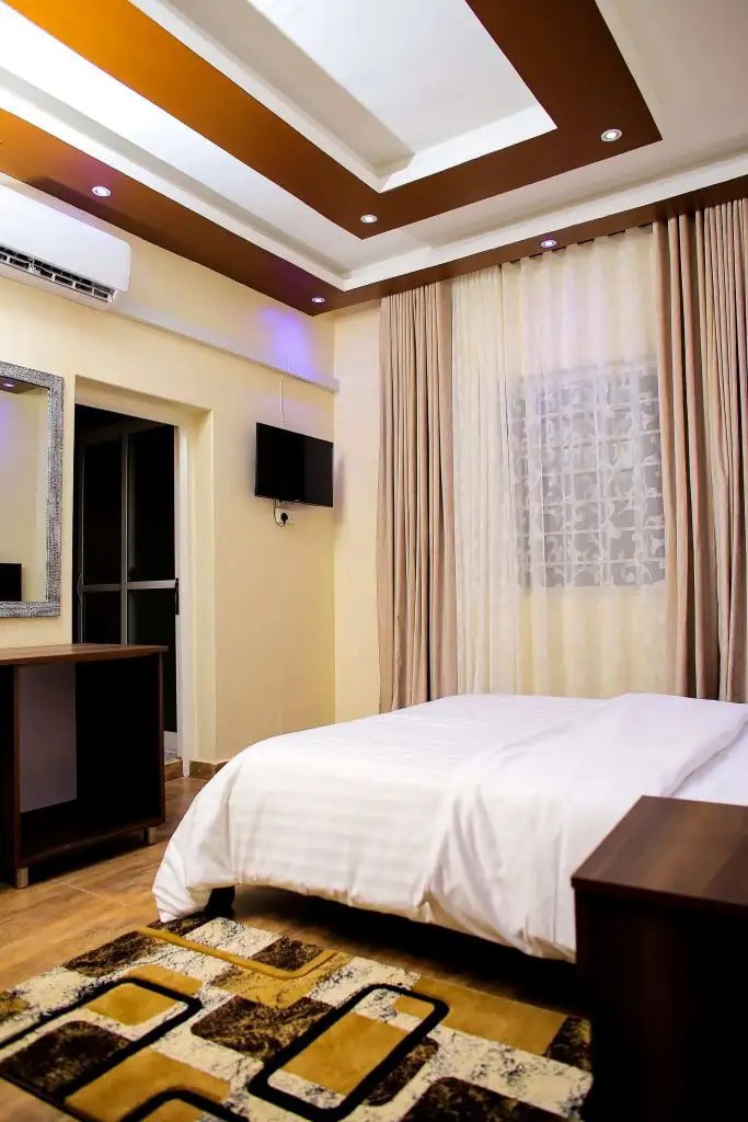 Enjoy the impressive executive suites, spacious air conditioned rooms, DStv connections, 24 Hours security, Hot water, Laundry services, Room Services, Internet Connection and arranged airport pick-ups.